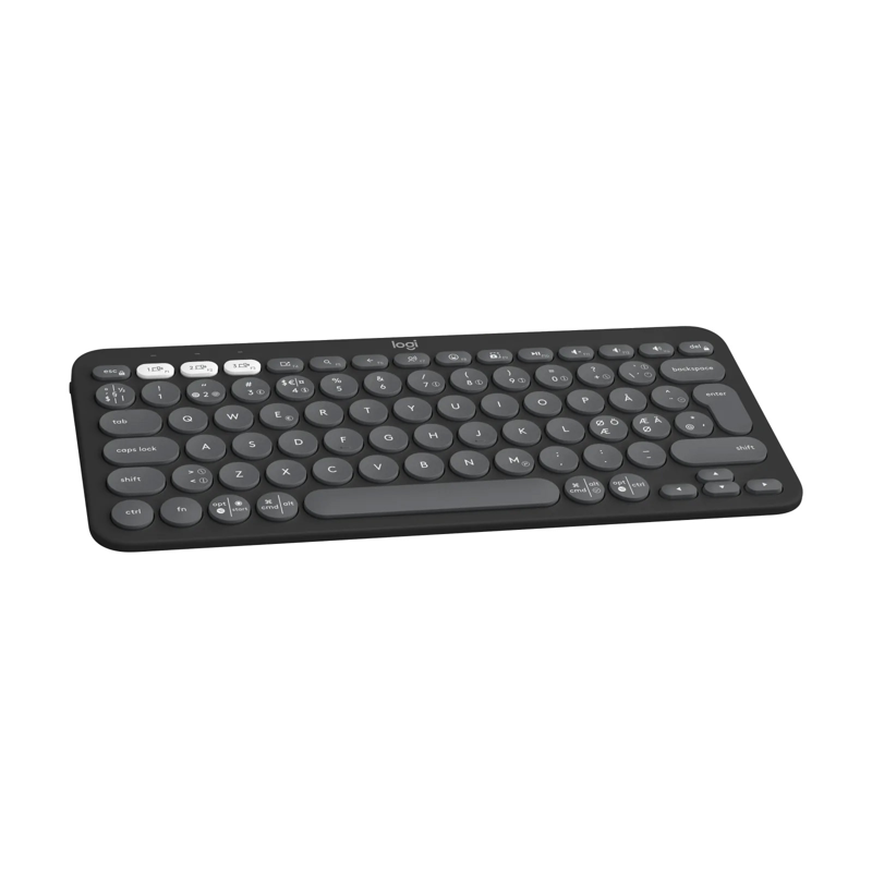 Haasta tylsyys pelkistetyllä kierrätysmuovista valmistetulla Pebble Keys 2 K380s - näppäimistöllä. Sen pelkistetty, siro muotoilu tekee siitä ikonisen ja erittäin kannettavan. Voit vaihdella helposti kolmen laitteen välillä Easy- Switch- painikkeiden avulla ja työskennellä nopeammin Fn-pikanäppäimillä, kuten kuvankaappauksella ja haulla. Mukauta kymmentä Fn-pikanäppäintä Logi Options+ -sovelluksella.
