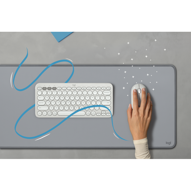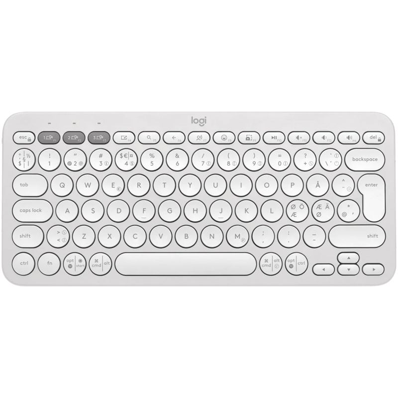 Haasta tylsyys pelkistetyllä kierrätysmuovista valmistetulla Pebble Keys 2 K380s - näppäimistöllä. Sen pelkistetty, siro muotoilu tekee siitä ikonisen ja erittäin kannettavan. Voit vaihdella helposti kolmen laitteen välillä Easy- Switch- painikkeiden avulla ja työskennellä nopeammin Fn-pikanäppäimillä, kuten kuvankaappauksella ja haulla. Mukauta kymmentä Fn-pikanäppäintä Logi Options+ -sovelluksella.