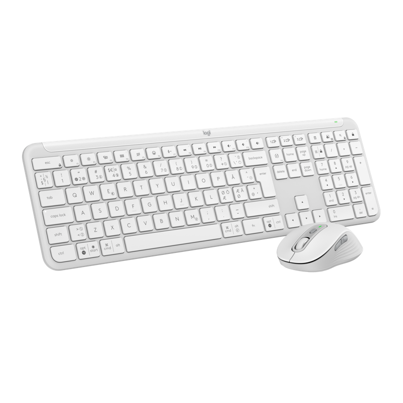 Kirjoita ja napsauta eri tietokoneilla vaivatta Signature Slim MK950 - näppäimistöllä ja -hiirellä, jotka tekevät työelämästä taianomaista tehokkailla mukautuksilla ja pikanäppäimillä. Täysikokoisen Signature Slim Keyboard K950 -näppäimistön siro muotoilu ja laadukas rakenne nostavat minkä tahansa työpöydän tasolle. Sitä täydentää Signature Plus Mouse M750 ja sen mukava kaareva muoto – mikä tekee siitä upean, kierrätysmuovista valmistettuyhdistelmän. Hiljainen kirjoittaminen ja napsauttelu niin näppäimistöllä kuin hiirellä auttavat sinua keskittymään ja aiheuttavat vähemmän häiriöitä muille. Hiiren SmartWheel-vieritysrullan avulla vierität sivuja ja asiakirjoja nopeasti ja tarkasti. Voit käyttää näppäimistöä ja hiirtä useammalla laitteella sekä käyttöjärjestelmällä – vaihda kannettavan tietokoneen, tabletin ja puhelimen välillä. Yhdistä näppäimistö ja hiiri langattomasti Bluetoothilla tai mukana tulevalla Logi Bolt -USB-vastaanottimella.