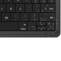 - Näppäimistön pinta on vettä hylkivää materiaalia suojaten sitä roiskeilta