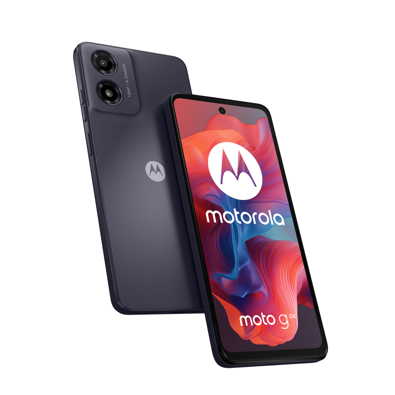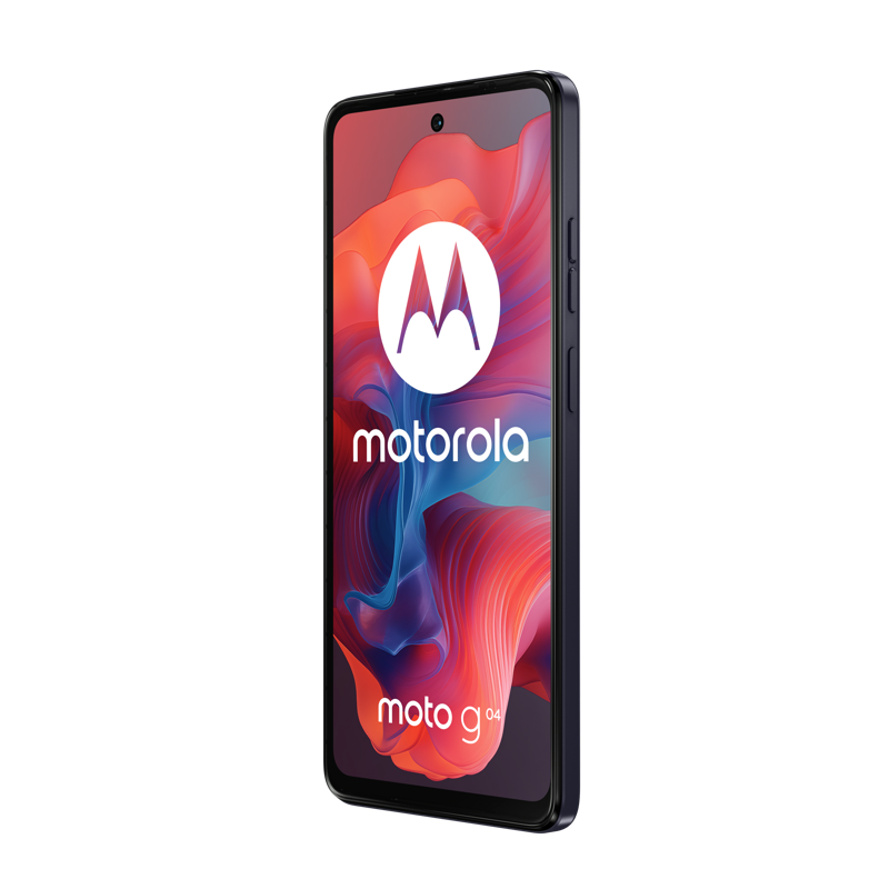 Motorola G04, laturi, USB-C-kaapeli, pikaopas, SIM-työkalu, suojakotelo