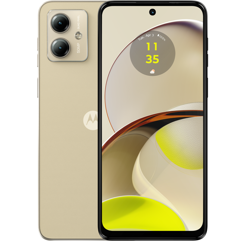 Motorola g14, laturi, USB-C-kaapeli, pikaopas, SIM-työkalu, suojakotelo
