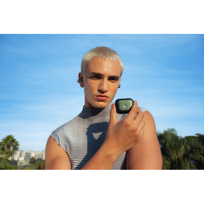Esittelyssä moto buds loop – tyylikkäät ja kevyet nappikuulokkeet, jotka vievät äänikokemuksesi uudelle tasolle ja pitävät sinut samalla yhteydessä ympäröivään maailmaan. Avoimen rakenteensa ansiosta moto buds loop tarjoaa juuri sen ulkonäön, jota haluat, ja koko päivän kestävää mukavuutta, jota tarvitset. Pysy hallinnassa kiireisen päivän keskellä – et jää mistään paitsi, kun yhdistät kuulokkeet moto ai -tekniikkaa hyödyntäviin laitteisiin. Nauti uskomattoman selkeästä ja tasapainoisesta äänestä Sound by Bose -teknologian ansiosta. Koe kirkkaat ja selkeät puhelut kehittyneen mikrofonijärjestelmän avulla. Laadukkaat materiaalit ja vettähylkivä rakenne suojaavat kuulokkeitasi arjen rasituksilta. Jopa 8 tunnin keskeytymätön kuunteluaika ja runsaasti lisävirtaa kotelossa takaavat, että virta ei lopu kesken. moto buds loop – aina samassa tahdissa kanssasi.