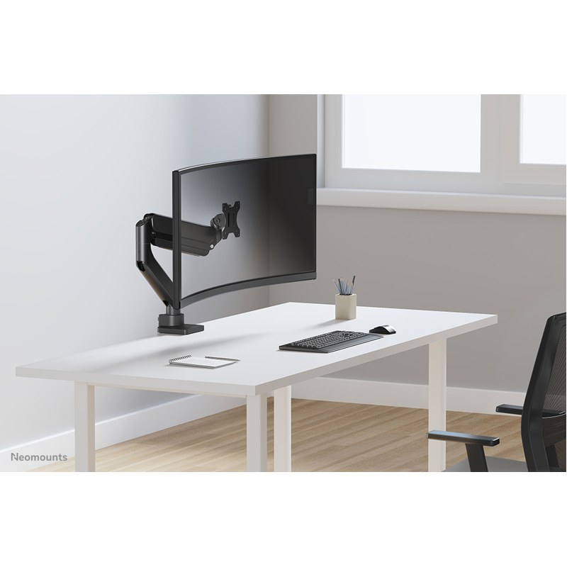 Neomounts DS70PLUS-450BL1 NEXT Core on täysin liikuteltava pöytäkiinnike, joka on suunniteltu kaareville ultralaajakulmanäytöille aina 49" kokoon saakka. Kiinnikkeessä on vahvistettu varren pää, joka on erityisesti kehitetty tukemaan kaarevia ultralaajakulmanäyttöjä ja mahdollistaa enintään 18 kg (kaarevat näytöt 14 kg) maksimikuormituksen. Monipuolinen kallistus- (90°), kierto- (360°) ja kääntötoiminto (180°) mahdollistavat näytön asettamisen mihin tahansa katselukulmaan, jotta sen ominaisuuksista saadaan paras mahdollinen hyöty. Lisäksi kiinnikkeessä on kaasujousella varustettu korkeussäätö (26,1–55 cm) ja syvyyssäätö (5,4–49,7 cm), joiden avulla voit luoda täydellisen työasennon.