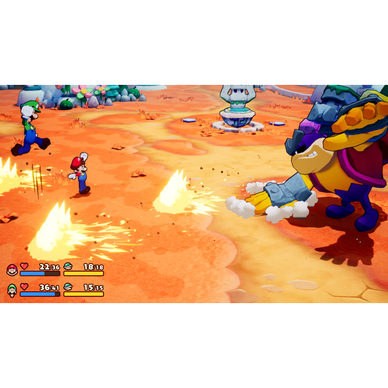 Sinun täytyy luottaa Marion ja Luigin veljessuhteeseen onnistuaksesi. Käytä Bros. Moves -liikkeitä päästäksesi esteiden ohitse tutkimusmatkallasi ja voimakkaita Bros. Attacks -hyökkäyksiä vuoropohjaisessa taistelussa. Tarvitset kaiken mahdollisen avun, mitä tämä “brothership” voi sinulle tarjota, pelastaaksesi päivän.