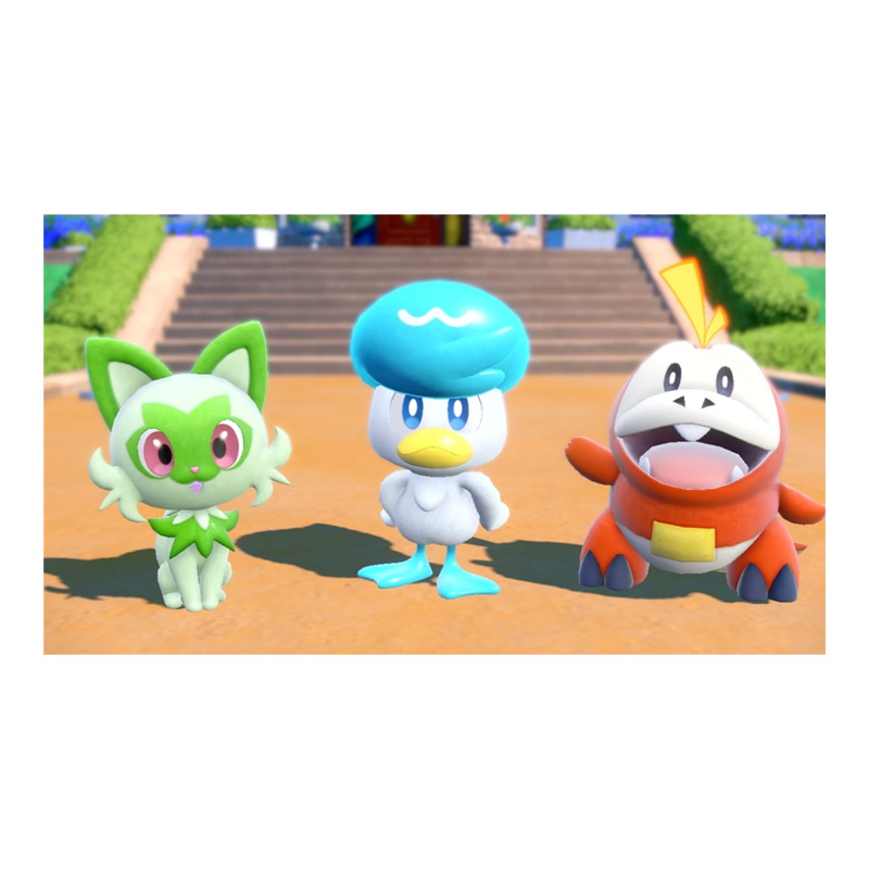 Valitse yksi kolmesta uudesta Pokémonista ensimmäiseksi kumppaniksesi: Sprigatito, Fuecoco tai Quaxly ja suuntaa jännittäviin seikkailuihin. Hahmosi asu määräytyy sen mukaan pelaatko Pokémon Scarlet- vai Pokémon Violet -versiota. Pokémon Scarlet -pelissä asusi on punainen ja Pokémon Violet -pelissä asusi on sininen.