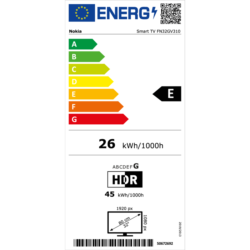 Energiatehokkuusluokka E (SDR) & G (HDR)