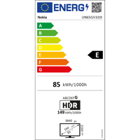 Energiatehokkuusluokka E (SDR) & G (HDR), virrankulutus enintään 200W