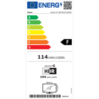 Energiatehokkuusluokka F (SDR) & G (HDR), virrankulutus enintään 250W