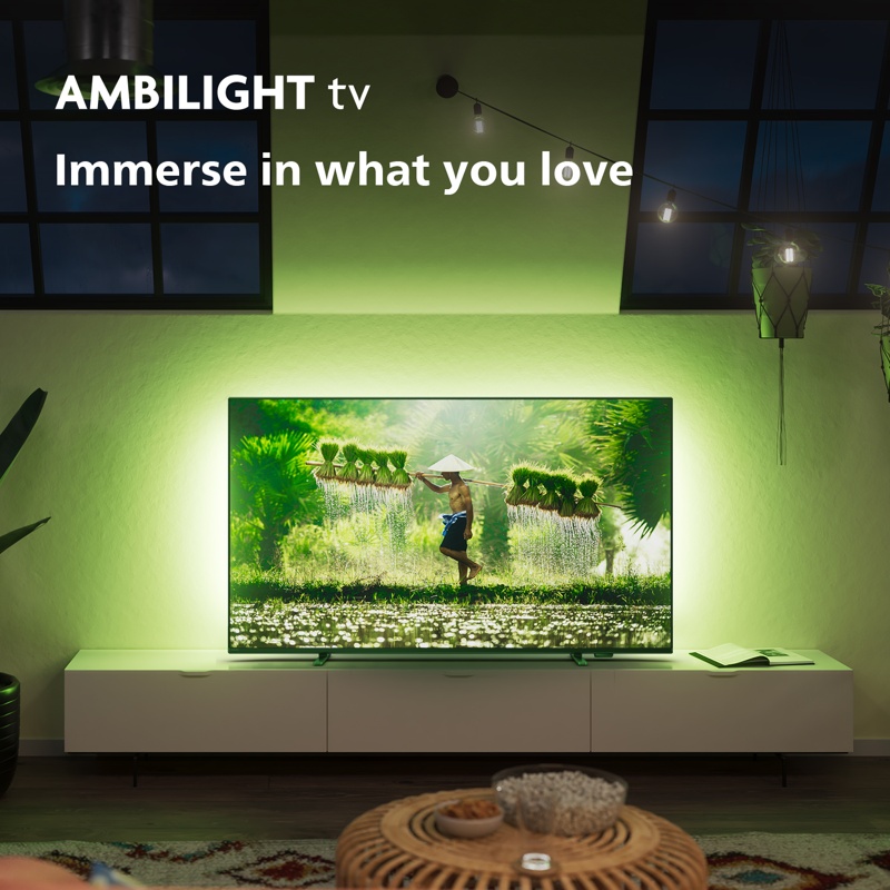 - Ambilight maalaa koko television taustan väriloistoon sisällön tai äänen mukaan, luoden upean tunnelman elokuvia, sarjoja ja pelejä varten