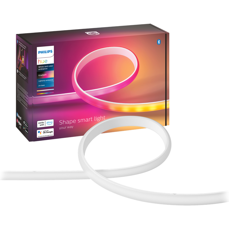Philips Hue Ambiance Gradient lightstrip -valonauha vie kodin älykkään tunnelmavalaistuksen täysin uuteen ulottuvuuteen. Valonauhassa yhdistyvät liukuväriteknologia ja uskomattoman joustava muotoilu, mikä tarjoaa sinulle monipuolisen valonlähteen, joka voidaan asentaa mihin tahansa. Näin saat ainutlaatuisen saumattoman sekoituksen värikästä valoa täydentämään kodinsisustuksen. Muotoile, leikkaa ja kiinnitä valonauha haluamallesi pinnalle ja pääset nauttimaan monivärisistä tunnelmavaloista missä tahansa.