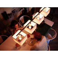 E14-kantaisella Philips Hue kynttilälampulla luot monipuolisia valaistuksia. Valittavissasi on kolme vaihtoehtoa. Valkoista 2700 K:n vakiovärilämpötilaista valoa tuottava White, viilän ja lämpimän valkoisen välillä vaihdeltavan White Ambiance sekä White and Color Ambiance, jolla voit valita joko sopivan sävyn valolle 16 miljoonan värivaihtoehdon joukosta, halusitpa sitten luonnollisempaa valkoista valoa tai räiskyviä värejä. Voit myös synkronoida valon sävyn muuttumaan esimerkiksi musiikin tai elokuvan mukaan täydentämään elämystä.