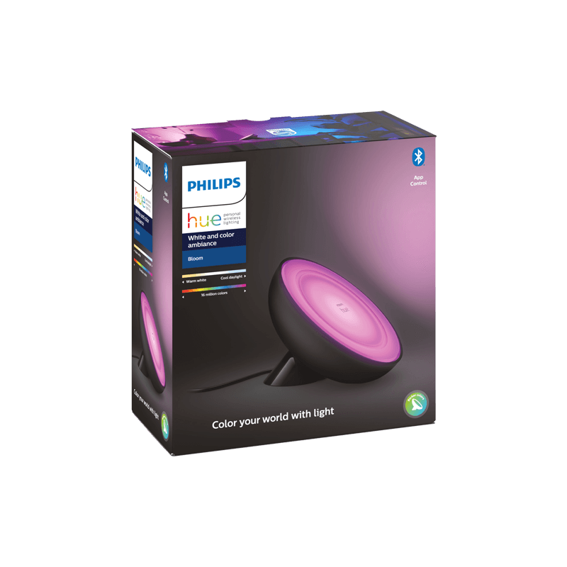 Philips Hue Bloom on pieni, monipuolinen älylamppu, jonka voi säätää valaisemaan miljoonissa eri väreissä. Bloom on niin helppo asentaa Plug & Play -ominaisuutensa ansiosta, että sitä voi käyttää missä tahansa: pöydällä se värjää seinät upealla valolla, yöpöydällä se toimii lempeänä yövalona ja television vieressä se tehostaa viihdekokemusta valonsa avulla.