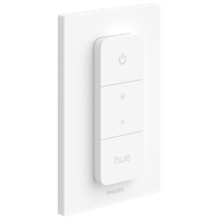 Ohjaa Philips Hue -älyvalaisimia nopeasti Hue-himmentimellä. Kaikki perheenjäsenet voivat yhdellä painikkeen kosketuksella välittömästi himmentää tai kirkastaa huoneen valaistuksen, sytyttää ja sammuttaa valaisimet tai määrittää valaistusasetukset. Paristokäyttöisen, langattoman Hue-himmentimen voi asentaa minne tahansa mukana tulevan teipin avulla. Irrota kytkin sen seinälevystä ja käytä sitä kaukosäätimenä tai kiinnitä se mihin tahansa magneettipintaan. Painamalla Hue-painiketta voit vaihtaa neljän valmiin, lukemiseen, rentoutumiseen, piristymiseen ja keskittymiseen tarkoitetun valaistusvaihtoehdon välillä. Muodosta yhteys Hue Bridgeen, niin voit mukauttaa kytkintä lisäämällä siihen suosikkivalaistusasetuksesi tai luomalla täydellisen valaistuksen vuorokaudenajan mukaan. Yhdistä Hue-himmennin Hue Bridgeen, niin voit ohjata kotisi kaikkia valaisimia, huoneita tai alueita kytkimen sijaintiin katsomatta ja mukauttaa kytkintä haluamallasi tavalla.