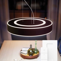 Ohjaa älyvaloja helposti ja nopeasti mukana tulevalla Dimmer Switch -himmenninkytkimellä. Kaikki perheenjäsenet voivat yhdellä painikkeen kosketuksella välittömästi himmentää tai kirkastaa huoneen valaistuksen, sytyttää ja sammuttaa valaisimet tai määrittää valaistusasetukset.
