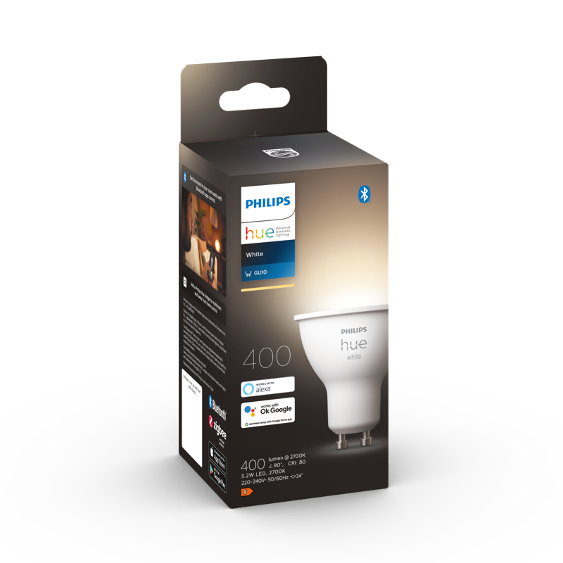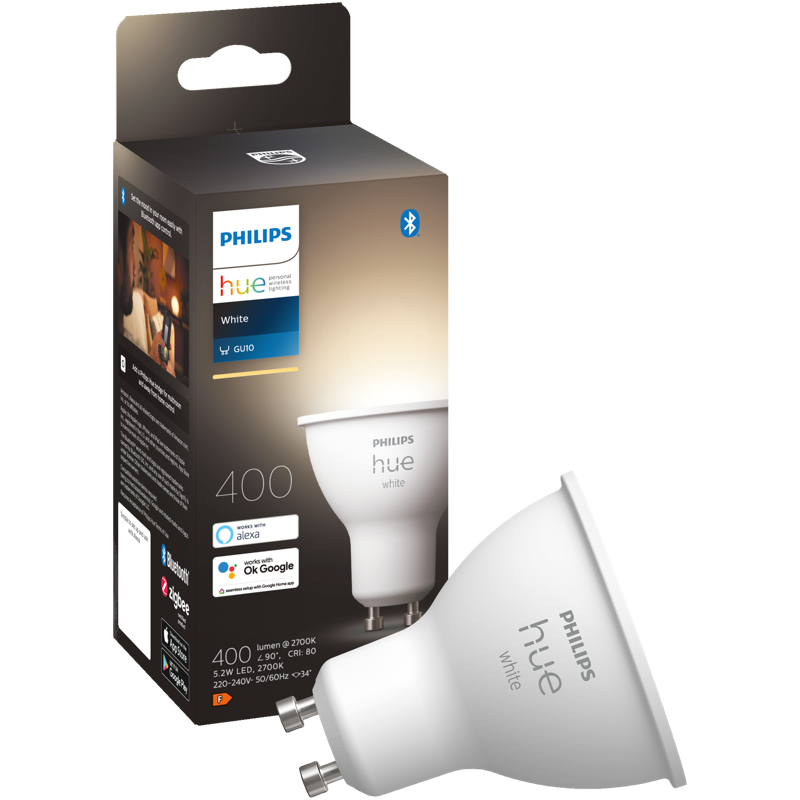 Philips Hue GU10 -spottilamput toimivat osana Philips Hue -valaisinjärjestelmää. Ohjaa yhden huoneen valaistusta Bluetooth-yhteyden avulla tai muodosta yhteys Philips Hue -siltaan, jotta saat käyttöösi kaikki ominaisuudet. Etäyhteyden avulla voit säätää lamppua älypuhelimella tai tabletilla missä ikinä oletkin.