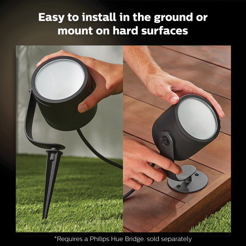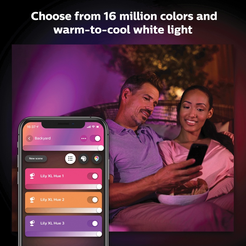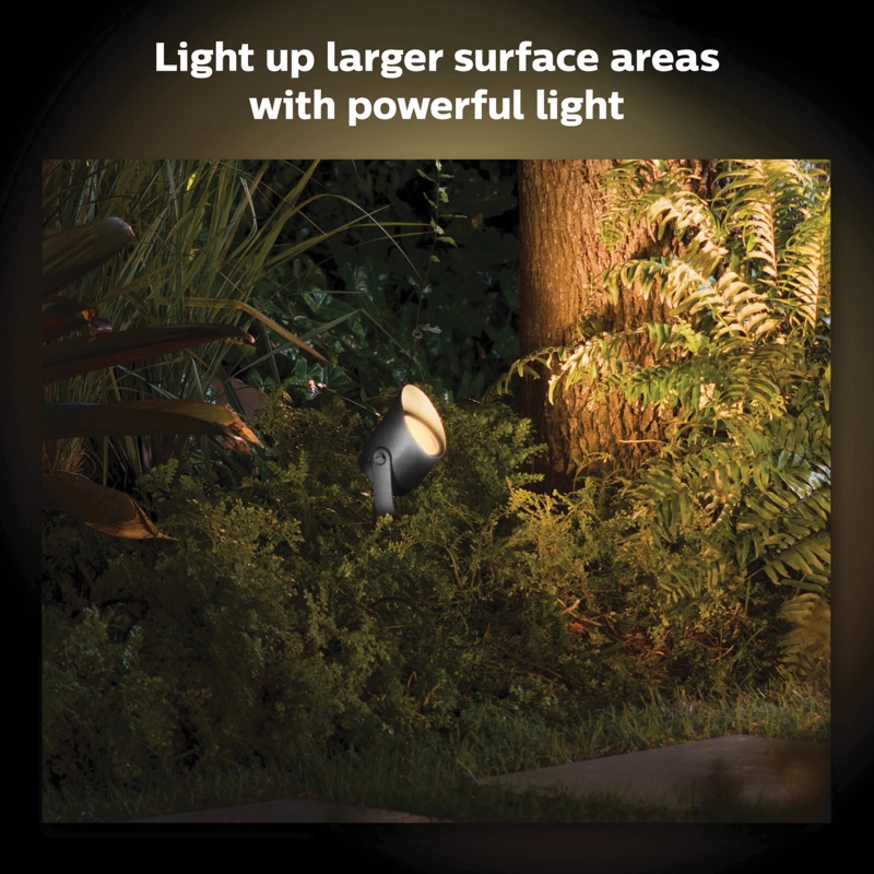 Philips Hue Lily XL on Lily-ulkokohdevalaisimen suurikokoisempi versio. Tämä tyylikäs pienjännitevalaisin voidaan piilottaa pihan istutusten taakse, mutta sen valoteho riittää silti hyvin talon tai puutarhan valaisemiseen. 16 miljoonan värivaihtoehdon ansiosta löydät aina ympäristöön sopivan valaistuksen. Pitkäikäinen ja turvallinen valaisin on IP65-suojattu, joten se kestää roiskeita ja vaihtelevia sääolosuhteita. Kohdevalaisimen käyttö vaatii Philips Hue Bridgen. Virtalähde ei sisälly pakkaukseen.