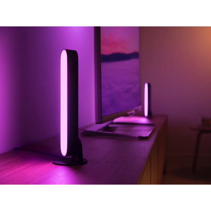 2 kpl Hue Play -valopalkkia, Signe-lattiavalaisin, Lightstrips -valonauha, Hue Bridge -silta ja HDMI Sync Box