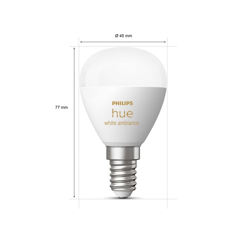 Philips Hue E14 -kruunulampun avulla voit integroida pienimmät valaisimet älykkääseen Philips Hue -valaistusjärjestelmääsi. Noin golfpallon kokoinen kruunulamppu sopii paikkoihin, joihin pidemmät E14-lamput eivät mahdu. Valossa on 50 000 eri sävyä lämpimästä valkoisesta viileään luonnonvaloon, ja valoja voidaan himmentää heti langattomasti.