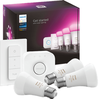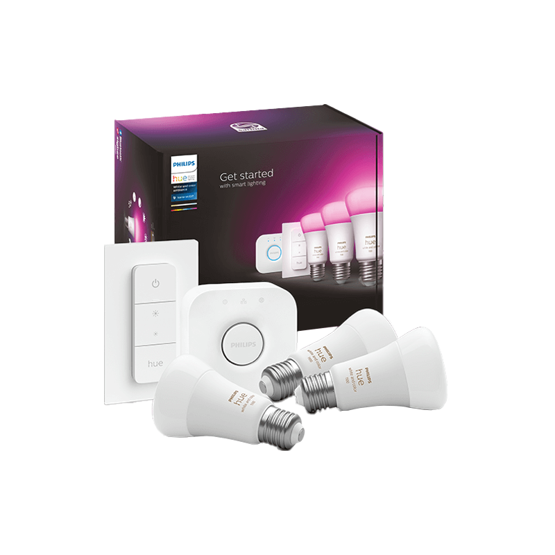 Philips Hue White and Color Ambiance E27 -aloituspakkauksen avulla voit luoda tunnelmallisen värimaailman mihin tahansa huoneeseen. Pakkaus sisältää Hue-sillan, jonka ansiosta saat käyttöösi lähes rajattoma valaistusvaihtoehdot. Voit hallita valaistusta sovelluksella, puheella tai pakkaukseen sisältyvällä kytkimellä.