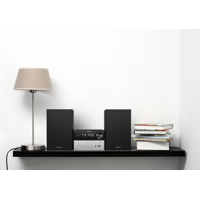 Verkkovirralla toimiva mikrojärjestelmä sopii minne tahansa. Bluetoothin kantama on 10 metriä, ja voit ladata älylaitteesi USB-portin kautta. Helppokäyttöisen kaukosäätimen keskeiset toiminnot ovat sormien ulottuvilla.