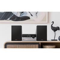 Verkkovirralla toimiva mikrojärjestelmä sopii minne tahansa. Bluetoothin kantama on 10 metriä, ja voit ladata älylaitteesi USB-portin kautta. Helppokäyttöisen kaukosäätimen keskeiset toiminnot ovat sormien ulottuvilla.