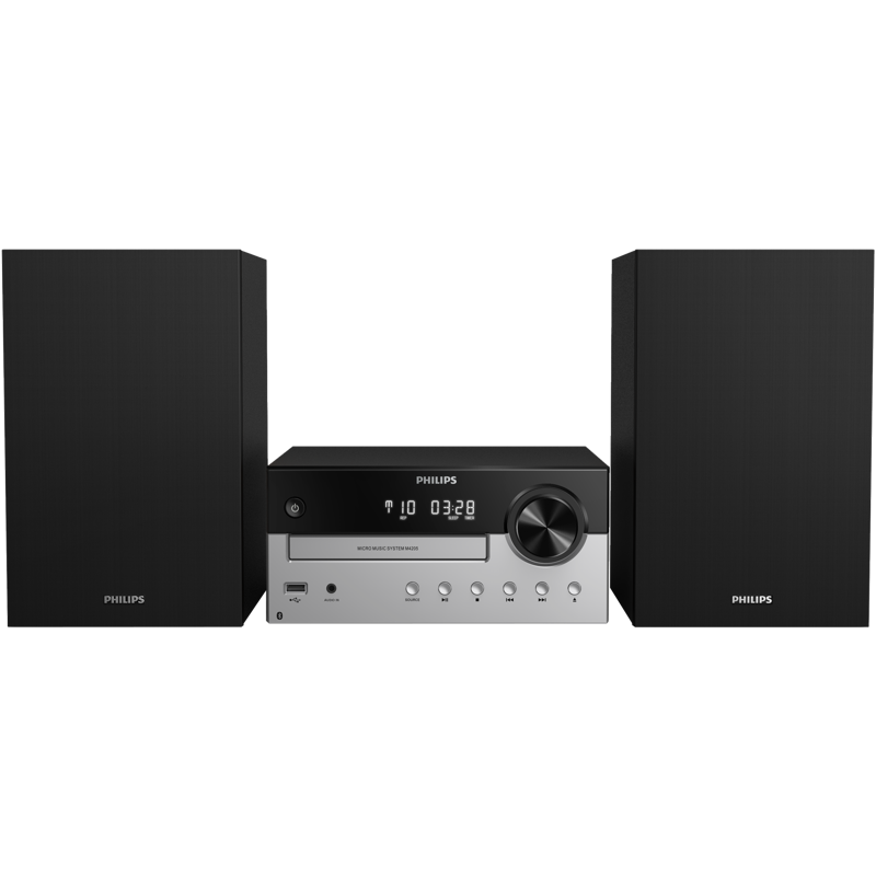 Klassisen tyylikkäällä M4205-mikromusiikkijärjestelmällä voit suoratoistaa esimerkiksi soittolistoja Bluetoothin kautta, toistaa CD-levyjä ja kuunnella FM-radiota. Digitaalisessa, selkeä-äänisessä radiovirittimessä on 10 esiasetusta, ja CD-soitin tunnistaa MP3-CD-levyt ja tallennetut CD-levyt.