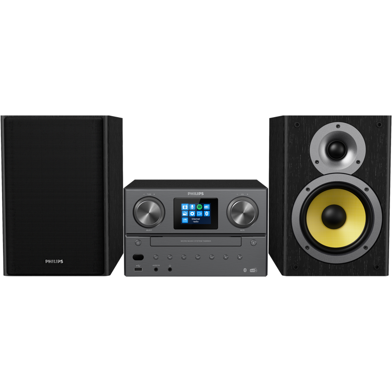 Philips M8905 täyttää huoneen suosikkiäänelläsi. M8905-mikromusiikkijärjestelmä on upea monitoiminen mikrojärjestelmä, joka toistaa äänen internet-radion, Spotify Connectin, Bluetooth-yhteyden ja CD-soittimen kautta. Voit myös kuunnella DAB+- tai FM-asemia laadukkaalla100 W:n äänellä.