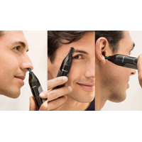 Nenä-, korva- ja kulmakarvatrimmeri on suunniteltu turvallisuus ja käyttömukavuus huomioiden. Teränsuojusjärjestelmä takaa siistin tuloksen ilman nykimistä ja se peittää terät siten, että ne eivät kosketa ihoa.
