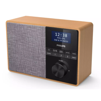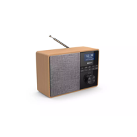 Mustaa näyttöpaneelia ja harmaan kankaan peittämää kaiutinta ympäröi vaalea puukotelo. Radion etupuolelta löytyy painikkeet viritykseen, äänilähteen valintaan ja muuhun. Äänenvoimakkuutta saat säädettyä tyylikkäällä kierrettävällä säätimellä.