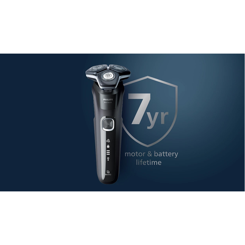 Philipsin Series 5000 tarjoaa tehokkaan parranajon, sillä se leikkaa enemmän karvoja yhdellä vedolla.* SkinIQ-tekniikkaa sisältävä partakone tunnistaa karvojen tiheyden ja mukautuu siihen, joten se on hellävarainen iholle.