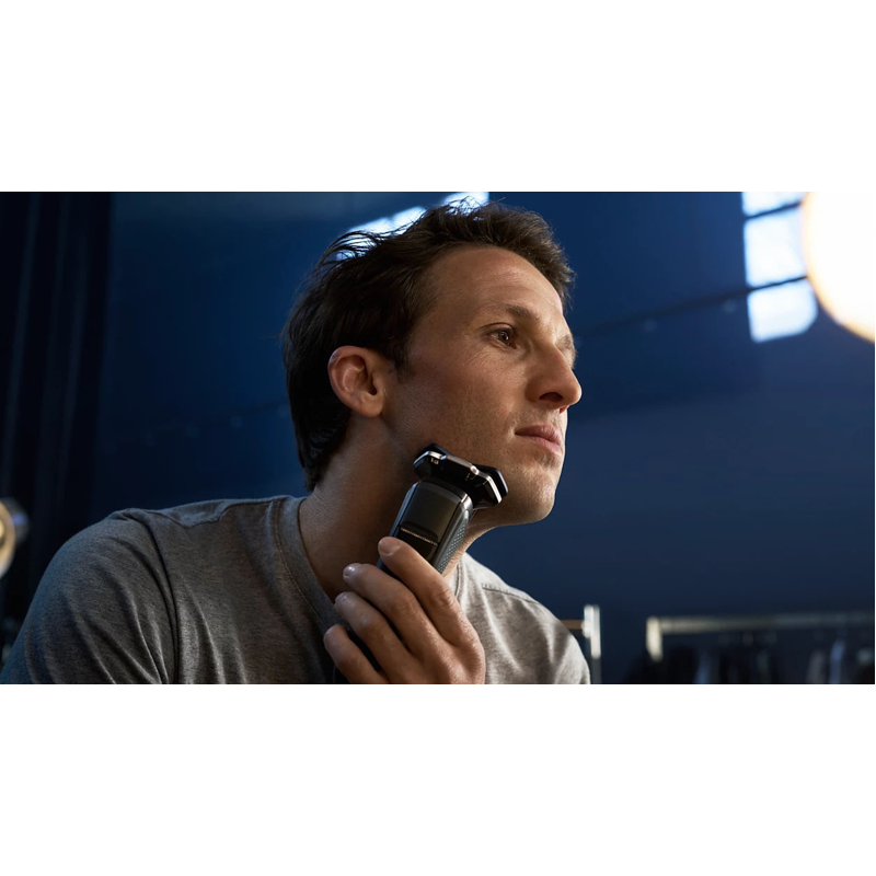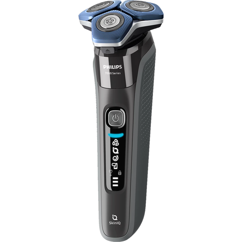 Philips Series 7000 liukuu tasaisesti iholla ja leikkaa jokaisen karvan tarkasti, jopa kolmen päivän sängen. SkinIQ-tekniikkaa sisältävä partakone mukautuu kasvojen muotoihin ja ohjaa liikettä, joten se on hellävarainen iholle.