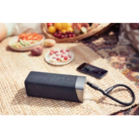 - Olohuoneesta terassille – reikä kantohihnaa varten ja IPX7-vesitiivis kaiutinelementti