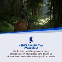 Langattoman DualSense-ohjaimen kosketuspalautteen ansiosta tunnet valikoiduissa PS5-peleissä tekemäsi toiminnot ohjaimen kautta. Valikoiduissa PS5-peleissä voit kokea lähemmäs pelejä vievät mukautuvat liipaisimet, joissa on dynaamiset, pelissä tehtäviä toimintoja simuloivat vastustasot.
