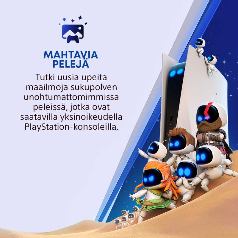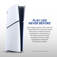 - Virtaviivaisella ja kompaktilla PS5 Slim -konsolilla nautit upeista grafiikoista ja koet uudet PS5-ominaisuudet