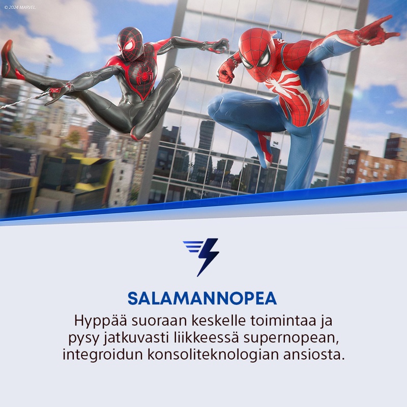 Räätälöity prosessori, grafiikkasuoritin ja I/O-integroitu SSD-asema asettavat PlayStation-konsolille aivan uudet standardit. Ota PS5-konsoliin asennetuista peleistä kaikki irti salamannopean latauksen ansiosta.