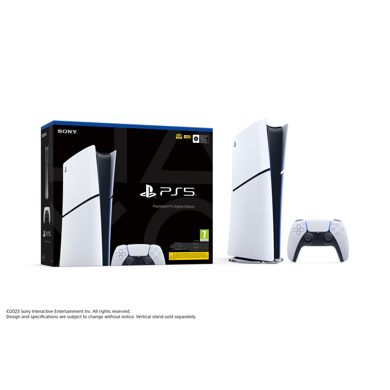 PlayStation 5 Digital Edition Slimissä ei ole levyasemaa. Levyasema myydään erikseen.