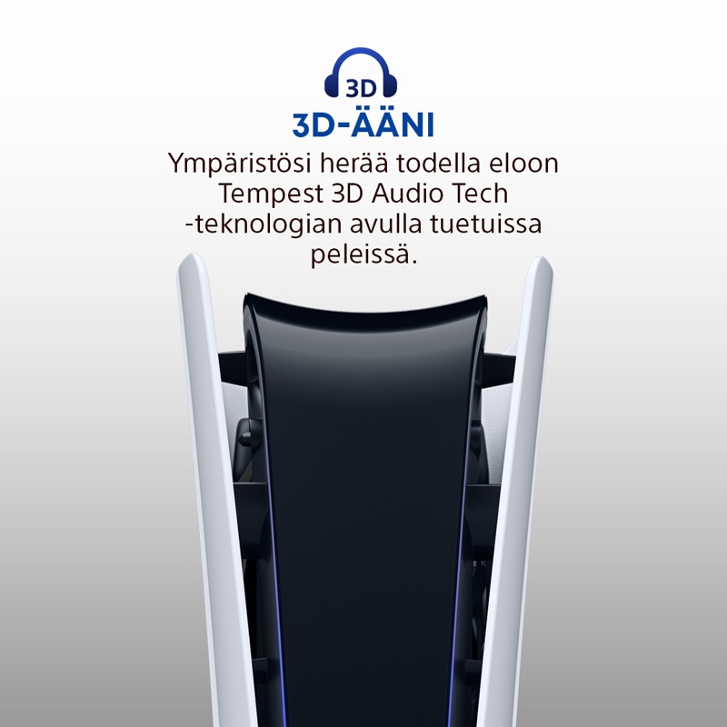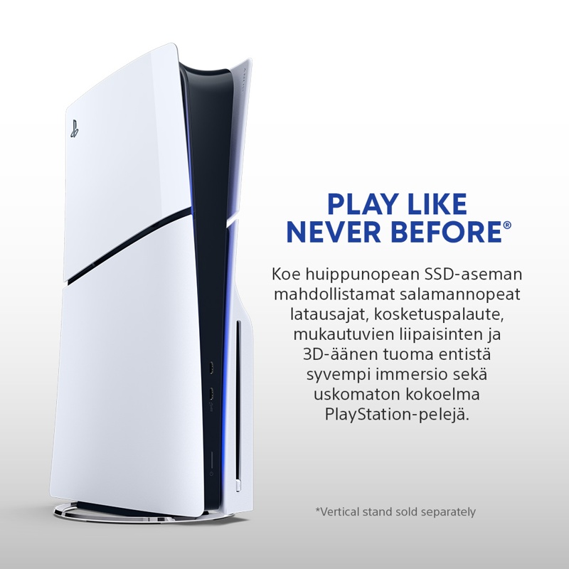 - Huom. PlayStation 5 Slim ei sisällä konsolin pystytukea. Pystytuki myydään erikseen.