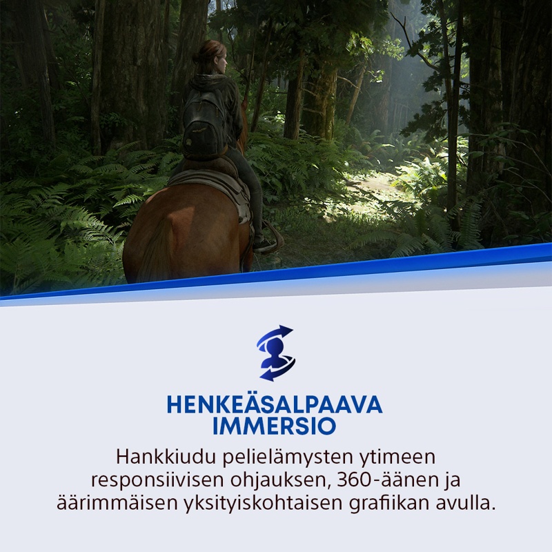 Räätälöity prosessori, grafiikkasuoritin ja I/O-integroitu SSD-asema asettavat PlayStation-konsolille aivan uudet standardit. Ota PS5-konsoliin asennetuista peleistä kaikki irti salamannopean latauksen ansiosta.
