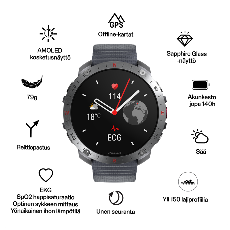 - Edistykselliset navigointi -ja urheiluominaisuudet kaikissa olosuhteissa