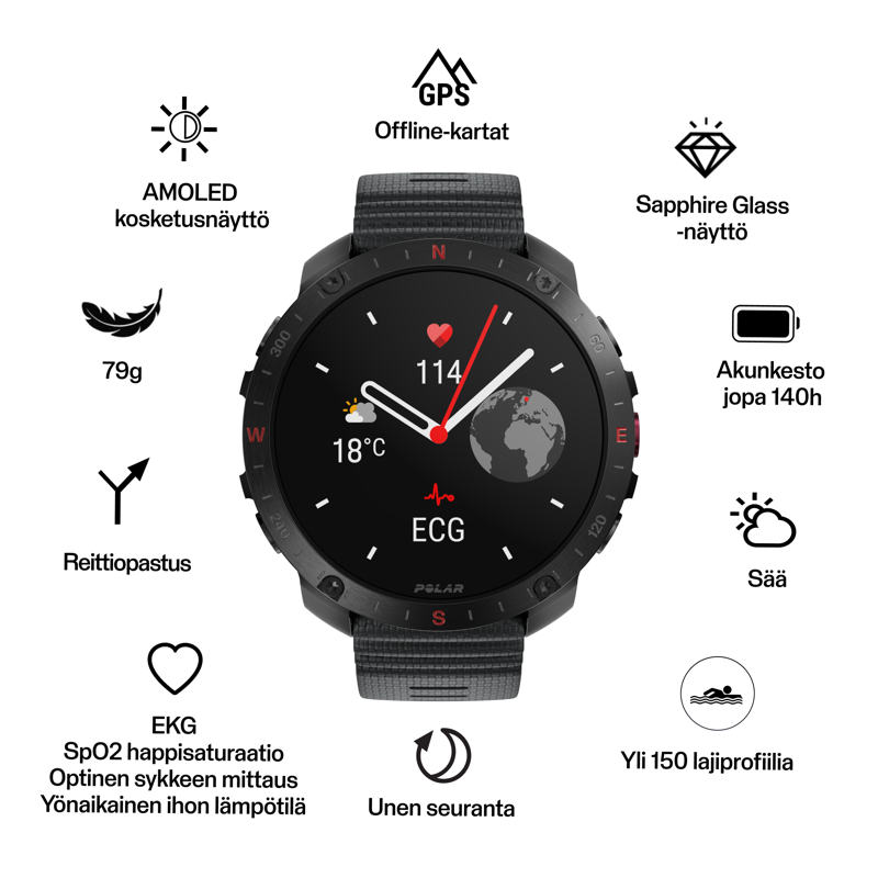 - Edistykselliset navigointi -ja urheiluominaisuudet kaikissa olosuhteissa