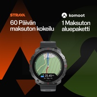 - Yhdellä latauksella jopa 43 tuntia treeniaikaa ja kellotilassa jopa 10 päivää