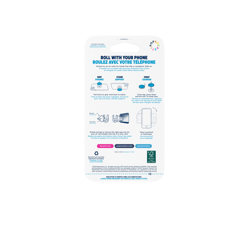 Tämä paketti sisältää kaiken, mitä tarvitset helppoon elämään älypuhelimesi kanssa. PopGrip -puhelinpidike tarjoaa vakaan otteen ja monipuolisia tapoja käyttää puhelintasi. PopMount2 -autopidike kiinnittyy helposti autosi tuuletusritilään, ja puhelimesi kiinnittyy siihen näppärästi PopGripin avulla.