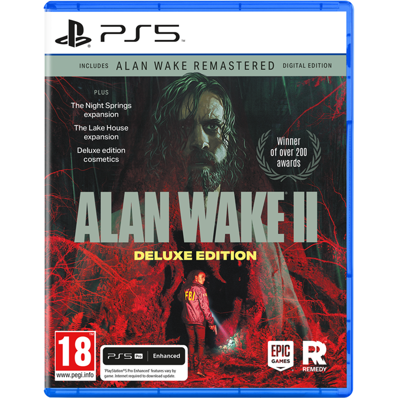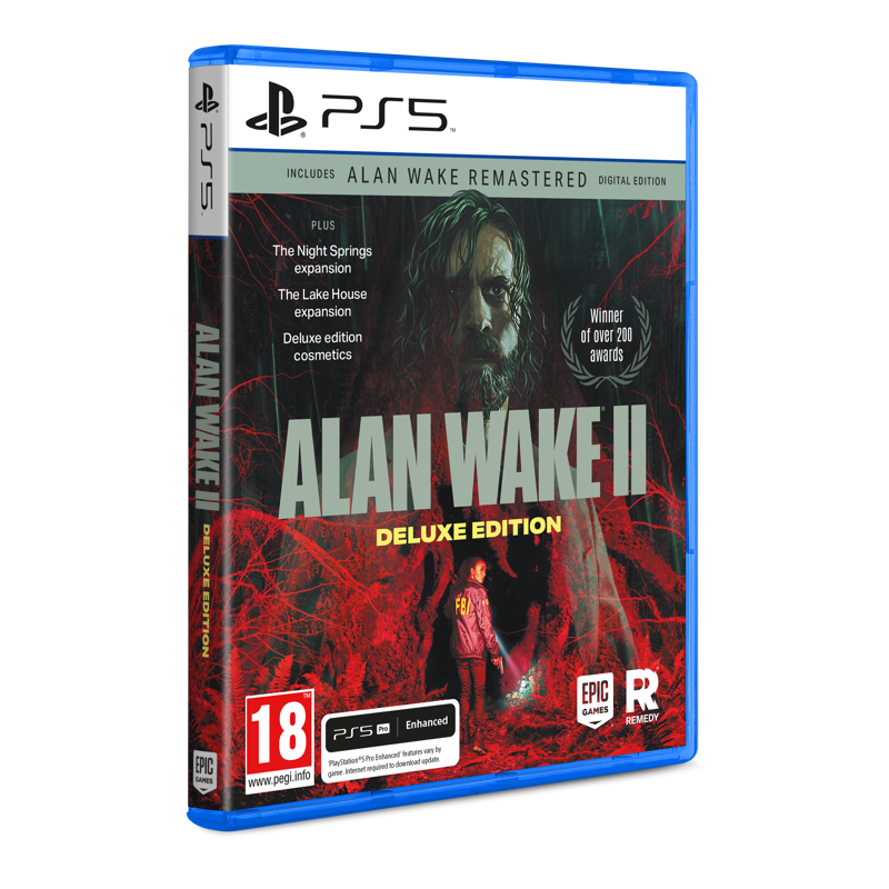 - Sisältää Alan Wake 2 -pelin, kaksi lisäosaa, skinejä ja Alan Wake Remastered -pelin digitaalisen version