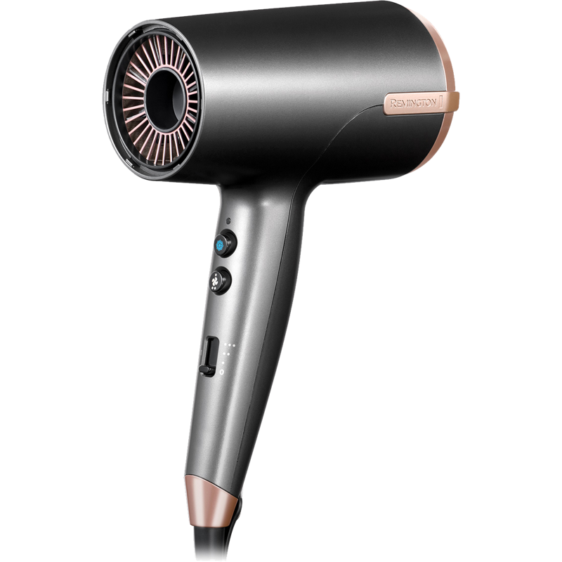 Remington ONE -hiustenkuivaajan jopa 120 km/h:n puhallusopeus tehostaa kuivumista 25 % Thermacare-anturi säädellessä ilman lämpötilaa ja suojaten hiusta äärimmäiseltä kuumuudelta. 8 eri lämpötila/puhallusnopeusyhdistelmän avulla on mahdollista valita juuri oikea lämpö ja teho omalle hiustyypille.