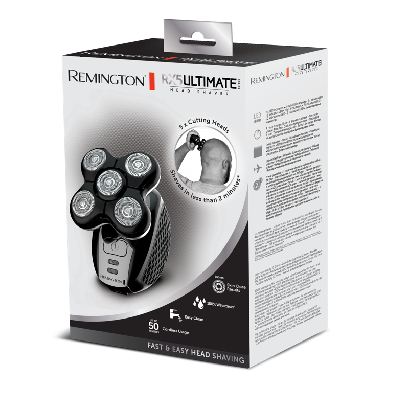 Ultimate Series RX5 -hiustenleikkurin viiden pyörivän kaksoisterän ansiosta pään kaljuksi ajaminen ei ole koskaan ollut näin helppoa ja nopeaa. Viiden leikkuupään ansiosta saat ajettua isomman alueen kerralla. Hiustenleikkurin joustava kaula ja terät helpottavat myötäilemään pään muotoja, joka tekee leikkaamisesta mukavampaa.