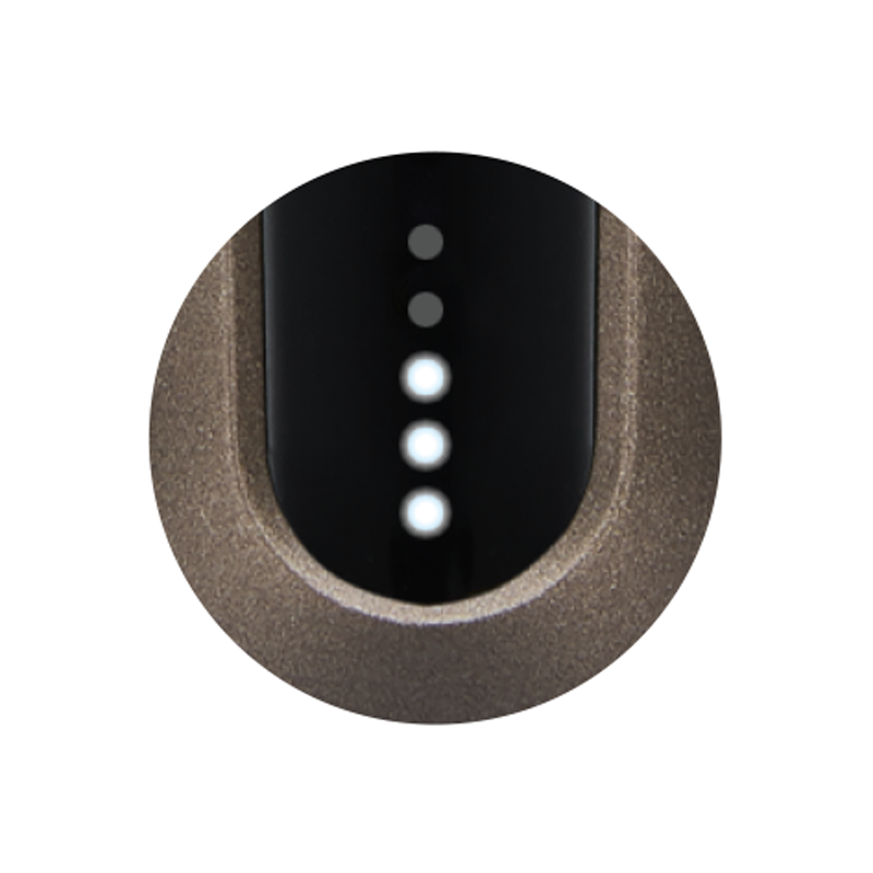 Älykäs Shave-Learn-LED-teknologia mukautuu parranajorutiineihisi oppimalla akun käytön jokaista parranajoa kohden, jotta se voi ilmoittaa, kun sinulla on enää viisi parranajoa jäljellä.