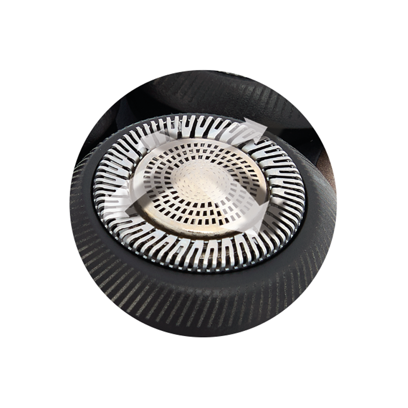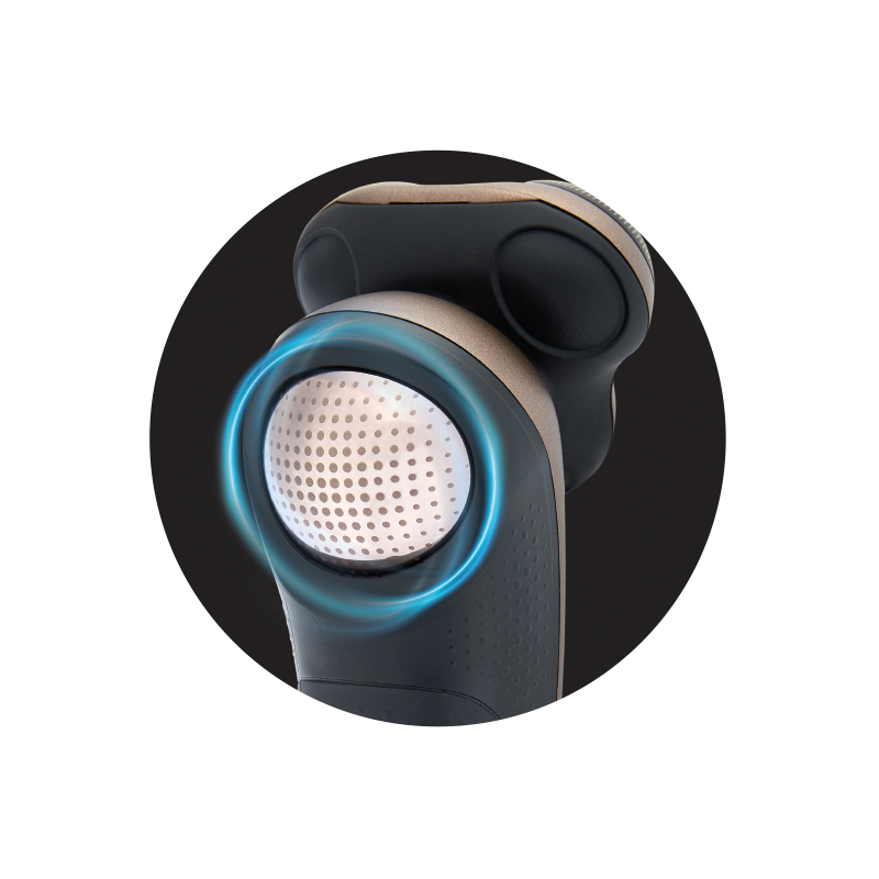 360° PivotBall-pallonivel tekee koneesta ainutlaatuisen. Se mahdollistaa ajopään liikkumisen vaivattomasti. Ajopää seuraa kasvosi, leukalinjasi ja kaulasi muotoja mihin tahansa suuntaan, ja säilyttää ihokosketuksen jokaisen partakarvan vangitsemiseksi, olivatpa ne kuinka itsepäisiä tahansa, ja jopa hankalasti ajettavilla alueilla.Yksittäiset joustavat terät liikkuvat itsenäisesti, saavuttaen jopa 130 000 leikkausliikettä minuutissa. Voit lisätä kätevästi tehoa yhdellä painalluksella. Turbo-ominaisuus nostaa kierroksia, ja leikkaa tehokkaasti karheimmatkin partakarvat.