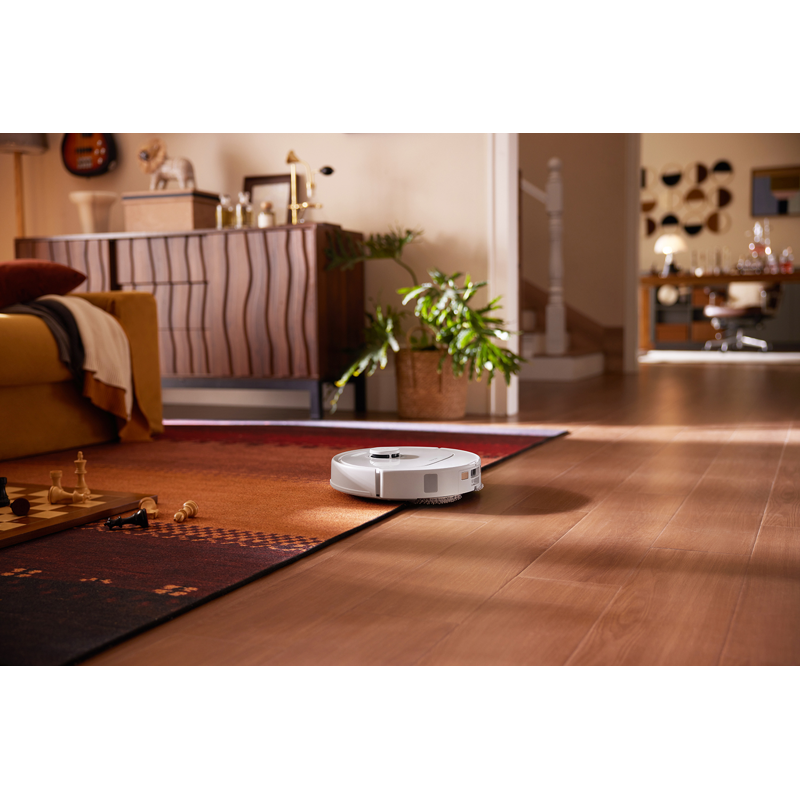 Varustettuna kahdella nostettavalla pyörivällä mopilla robotti selviytyy sitkeistä tahroista kovilla lattioilla. Lisäksi, kun se havaitsee maton, mopit nousevat automaattisesti ylös pitäen matot kuivina – varmistaen saumattoman puhdistuksen.
