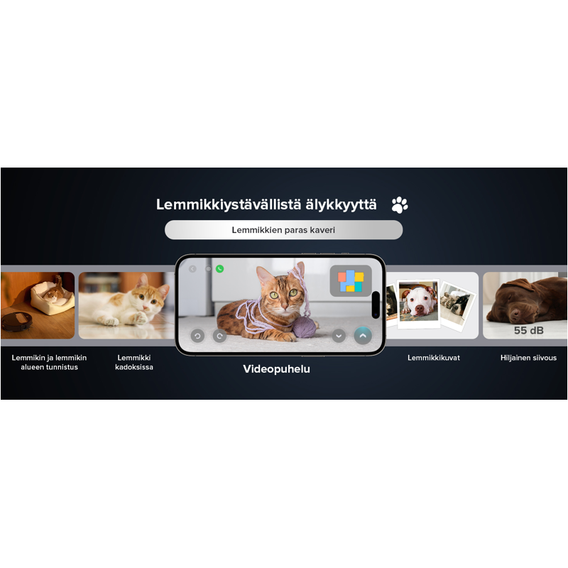 Saros Z70 on nyt varustettu toisella kameranäkymällä, joka tekee video-ominaisuuksista entistä hauskempia. Robotti pysäyttää pääharjansa ja väistää ennakoivasti lemmikkejä lähestyttäessä, jotta ne eivät säikähtäisi. Lisää imutehoa lemmikkitarvikkeiden läheltä siivotessa kokonaisvaltaisen puhtauden takaamiseksi. Taltioi suloisia hetkiä lemmikeistäsi siivouksen aikana – valmiina ladattavaksi. Etkö löydä piilosta leikkivää lemmikkiäsi? Kannatko huolta kotona yksin olevasta lemmikistä? Napin painalluksella sovelluksessa robotti liikkuu ympäri kotiasi ja auttaa sinua löytämään lemmikkisi.
